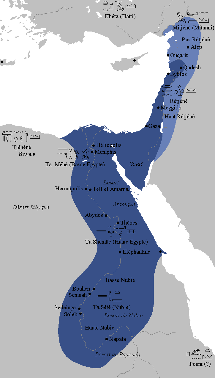axes : l'axe nubien vers le sud et syro-palestinien vers