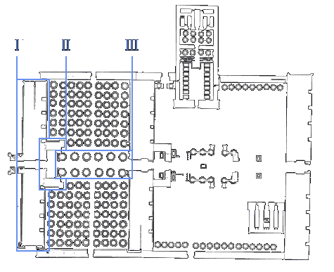 une salle hypostyle dont le plafond était soutenu par